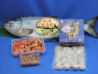 ●冷凍ホタテ貝柱 Fマル特 (1kg袋入)・・・1袋●ホタテカレー中辛(200g)・・・1箱
